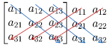aijor\<A\>ij. 如果 aij 是實數, 通常會被稱為純量(scalars) - 前述的矩陣可被寫成 [aij]m*n 或 [aij]