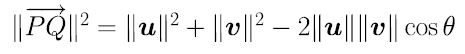 = ||u||^2 ||v||^2 ( 1 – (cosθ)^2)