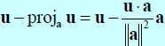 - 向量 w2 被稱作 u 對 a 的垂直分量