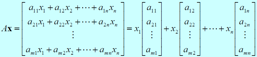 The product Ax of a matrix A with a column matrix x is a linear combination of the column matrices of A with the coefficients coming from the matrix x