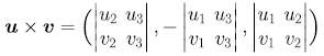 - 若 u = (u1,u2,u3) 和 v=(v1,v2,v3) 式三維空間的向量, 則外積 u×v 是個向量, u×v = (u2v3 – u3v2, u3v1 – u1v3, u1v2 – u2v1)