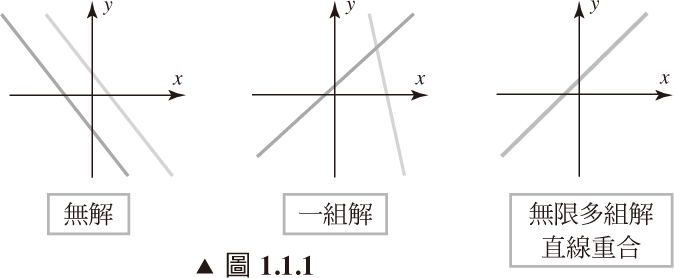- 每個線性系統只會有這三種可能: 單一解,無解,無限多組解